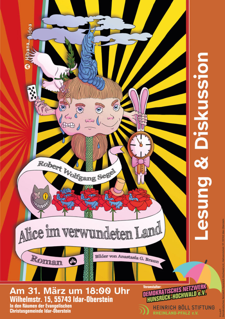 liest am 31. März um 18 Uhr in den Räumen der Evangelischen Christusgemeinde, Wilhelmstr. 15 in Idar-Oberstein aus seinem satirisch-fantastischen Roman: „Alice im verwundeten Land“.